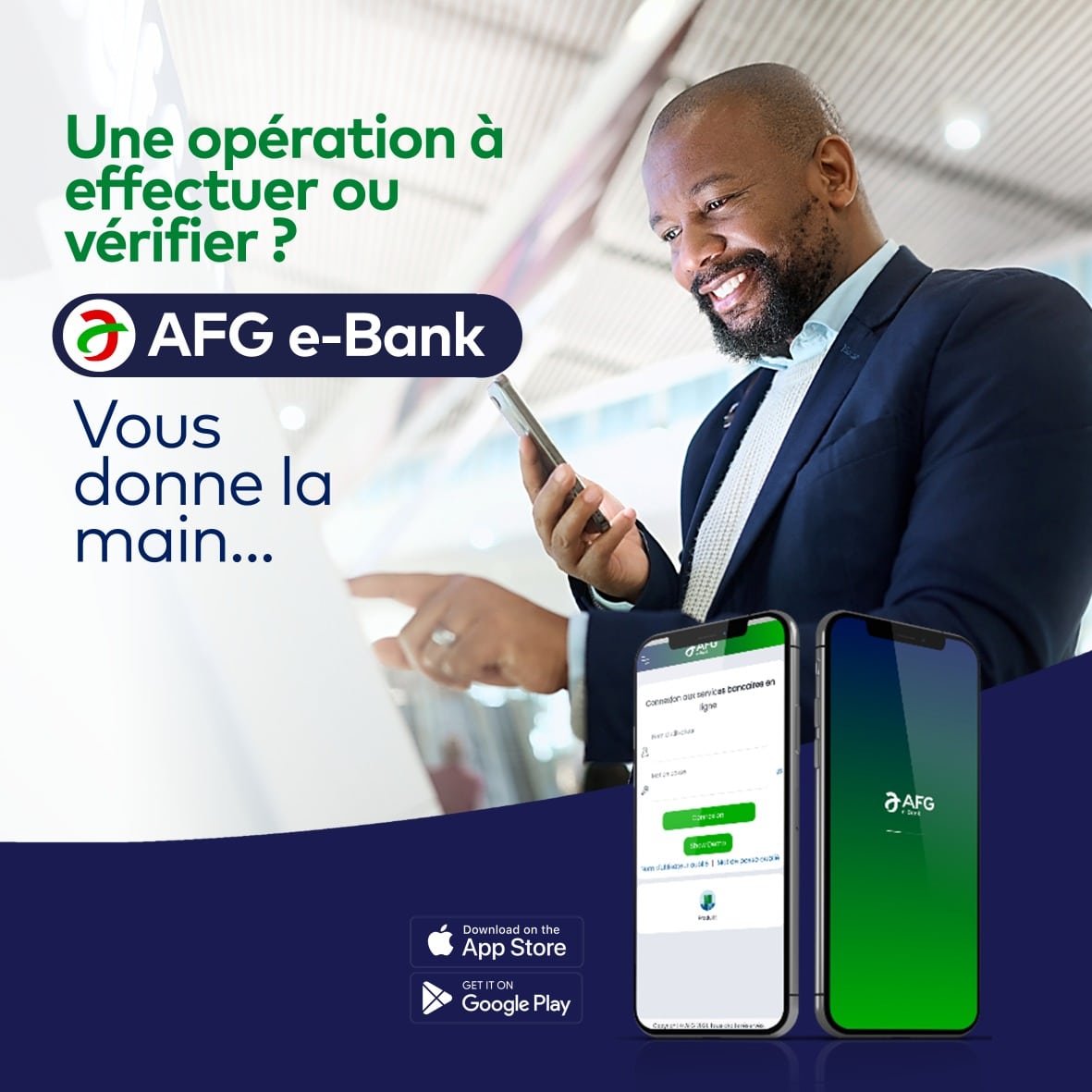 AFG e-Bank est votre application de banque à distance qui vous permet de consulter l’activité de vos comptes sans vous déplacer.