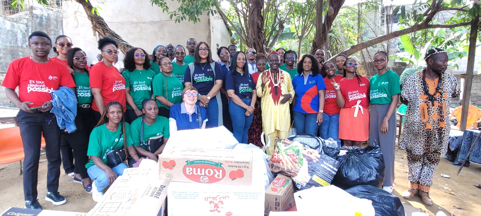 La délégation d’AFG Bank Cameroun, conduite par Mesdames Reine EPASSY, Directrice des Ressources Humaines et Linda KAMEGNE, Directrice de la Clientèle des Particuliers et des Professionnels, a été au quartier « MAKEPE MISSOKE » ce vendredi 07 mars 2025, au Centre d’accueil des déplacés du NOSO, afin de remettre à quelque 200 enfants, le fruit de l’effort d’aide humanitaire des femmes et des hommes d’AFG Bank Cameroun.